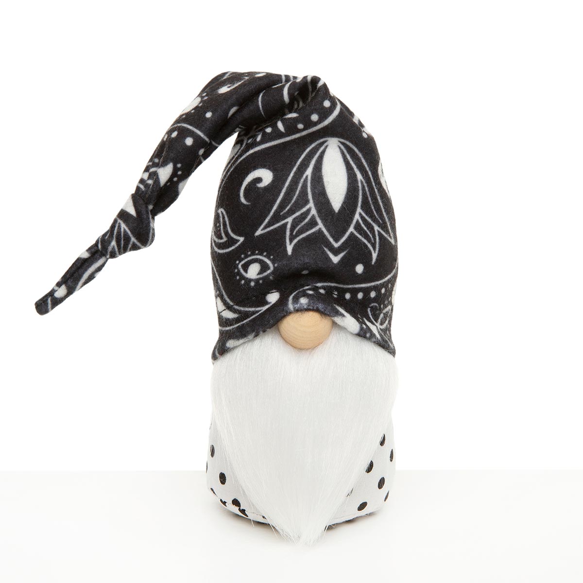 BUBBA BANDANA GNOME BLACK/WHITE WITH FLOPPY HAT, WOOD NOSE, PINDOT BODY AND WHITE BEARD 2.5"X11"