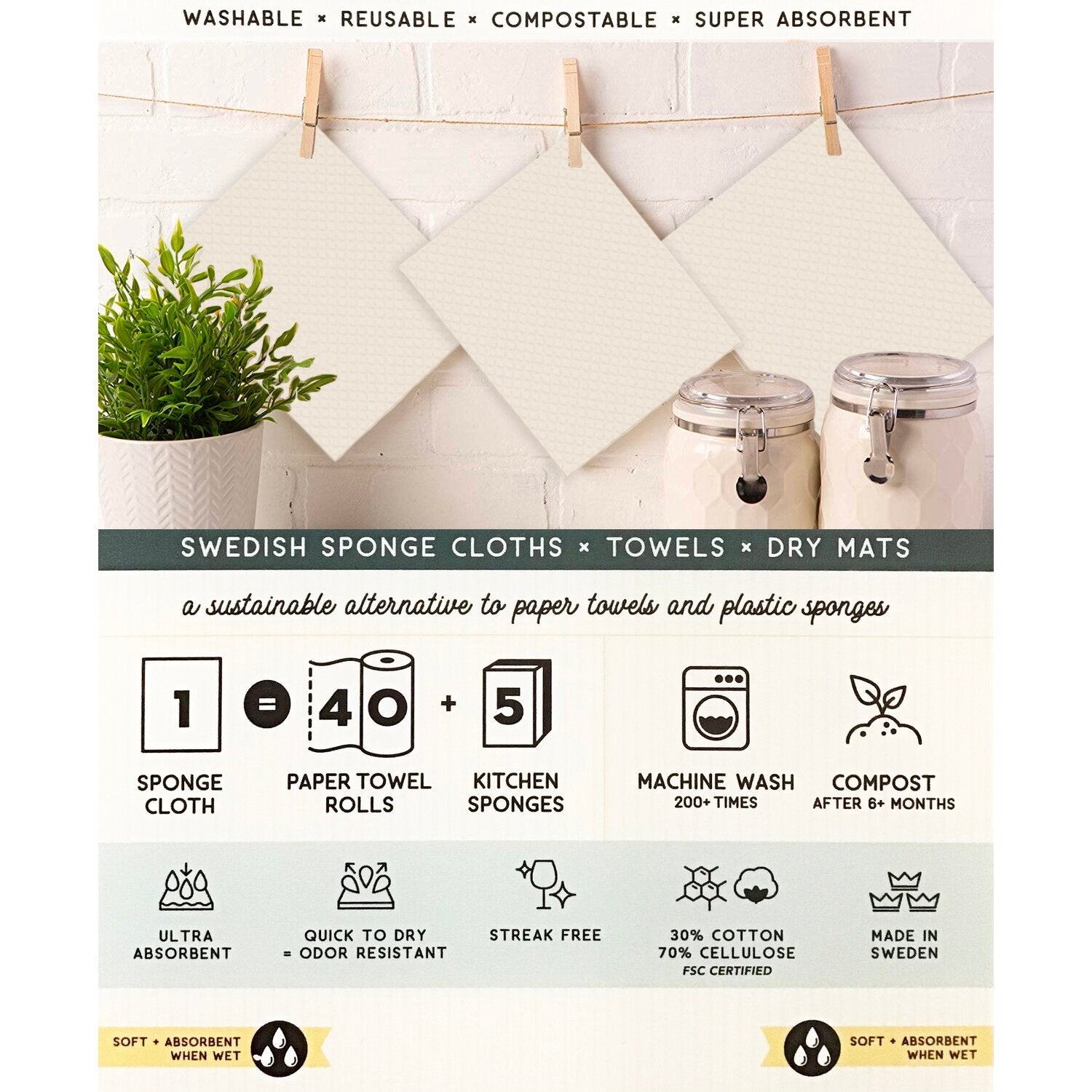 The towels hold up to 15x of their own weight in water, and are versatile cleaning helpers: use them to clean dishes, kitchen surfaces and appliances, bathrooms, countertops, windows, furniture, plants, and much more. Measurements: 6.75" x 8" (17 cm x 20 cm)