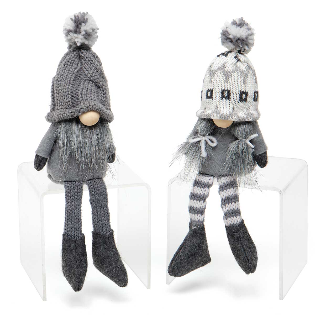 GREY/CREAM WITH POM-POM, SWEATER HAT, WOOD NOSE, GREY BEARD AND FLOPPY LEGS BOY/GIRL 2 ASSORTED SMALL 3"X8"