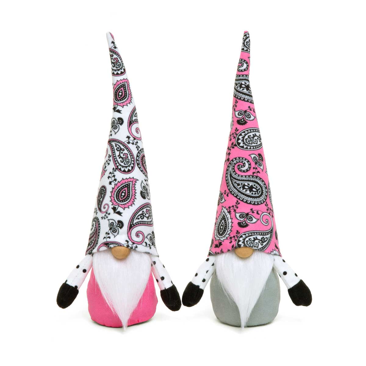 PAISLEY PAL GNOME DUO WITH PINK/BLACK/WHITE WIRED HAT, WOOD NOSE, WHITE BEARD AND ARMS 2 ASSORTED 3.5"X2.5"X10.75"